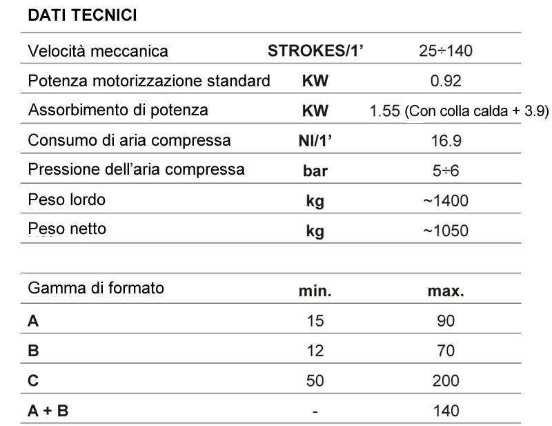 La messa in volume dell’astuccio, effettuata tramite una doppia lama snodata inserita nell’astuccio stesso garantisce una pre-rottura positiva delle fibre: ciò consente di utilizzare astucci con grammature basse, con sezione quadrata e/o con imperfezioni di incollatura e/o di cordonatura.