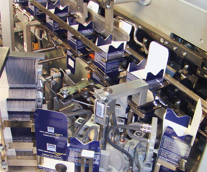 Each carton erection station is composed of two suction-cup arms which, by pulling externally on the two adjacent faces of the carton, guarantee positive opening, whatever board grammage is used and even in the case of handling square-section formats.