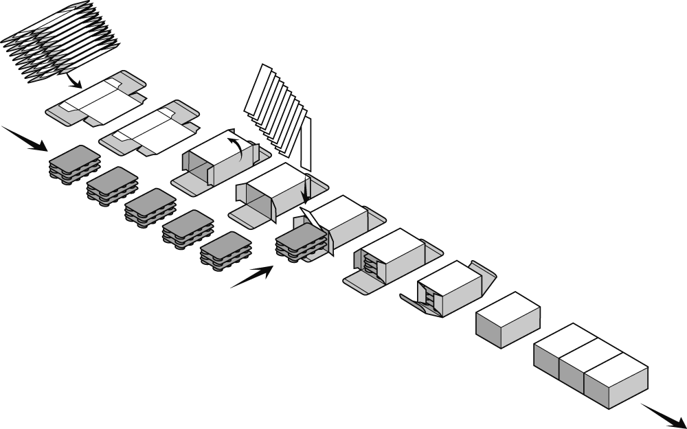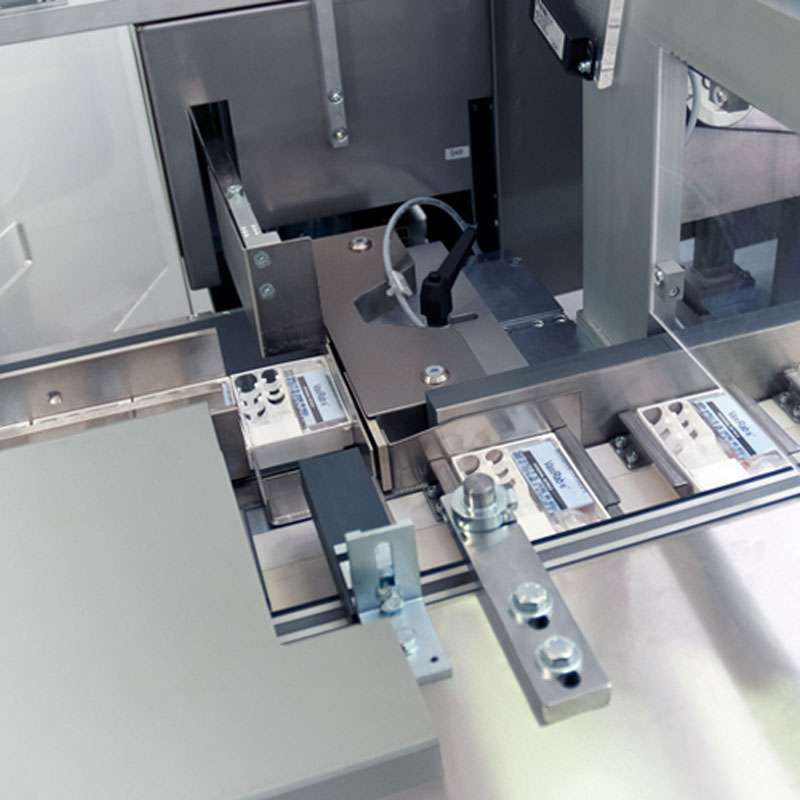 ThePMM cartoner can be equipped with a complete range of product feeding systems and additional units, such as: coders, leaflet and booklet feeders, detection and reject devices, etc.. As on all OAM machinery, the PMM is also equipped with the Mechanical Memory® system, transforming complete size change-over into a series of rapid and pre-set operations, which can be carried-out by unskilled personnel allowing production to be resumed immediately without the need for fine-tuning adjustments.